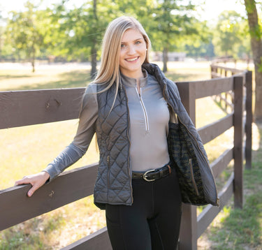 FITs Ainsley All Around is a versatile puffy vest that’s an ideal mid or outer layer for added warmth in cooler weather. Featuring sporty equestrian styling and silky soft, light weight outer fabric that sheds dirt and hair making this a great choice in and out of the barn. Equipped with an exposed two-way front zipper and double back vent and extended back length. This is a wonderful layering piece for all seasons and now features a inside zip pocket.