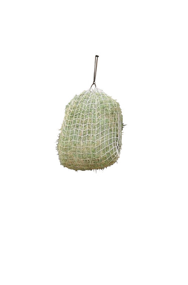 It is made from soft, yet extremely durable, woven knotless nylon. This easy to fill feeder also reduces the amount of waste and saves you money as almost no hay is lost to trampling. Measures 2 1/2' x 2' and holds 2 flakes. This bag should be hung high if your horse wears shoes or is playful. Includes draw cord closure. Spares kit includes repair cord and 3" safety clip.