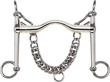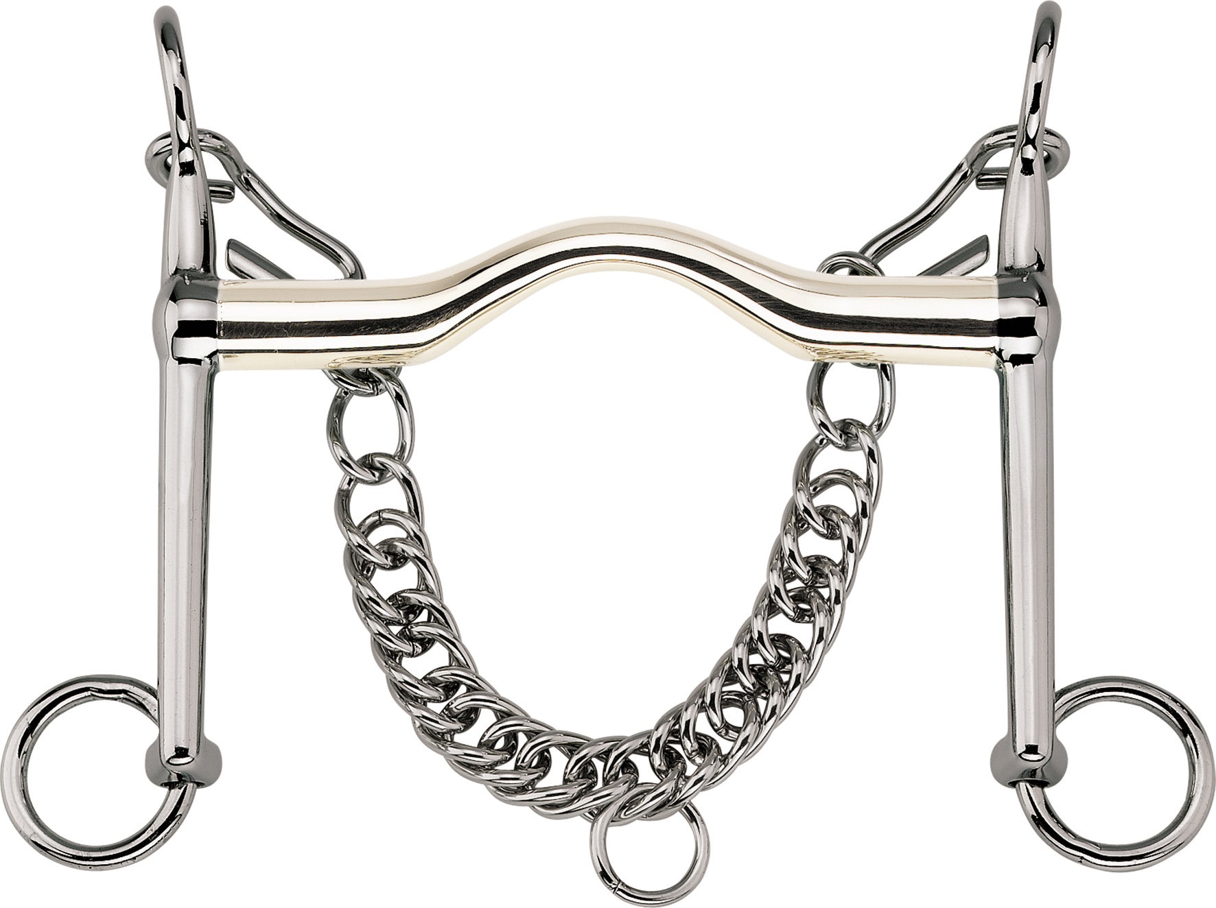 The Herm Sprenger Special Dressage Sensogan® Weymouth Bit has a 16mm Sensogan mouthpiece with a higher port that is angled forward 30 degrees and broader in the middle to allow more space for the horse’s tongue. It has 13cm stainless steel shanks; lower shanks are 7cm.