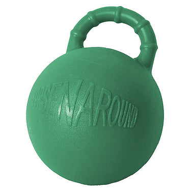 Horze Horse Play Ball helps keep your horse entertained. Great for stalls or pasture play as horses love to kick, chase, carry, shake and roll the ball. The large attached handle makes it easy for horses and humans to grab. Made from non-toxic, highly durable materials that resist punctures and will not deflate or need air.