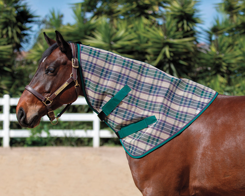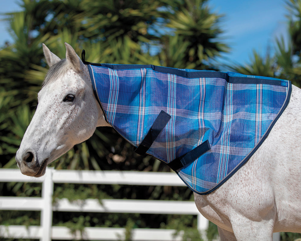 The Kensington™ Signature Textilene® Neck Cover for the Protective Sheet is designed to give your horse full coverage against insects. In breathable Textilene mesh, it covers your horse′s neck from withers to poll, yet allows freedom of movement.
