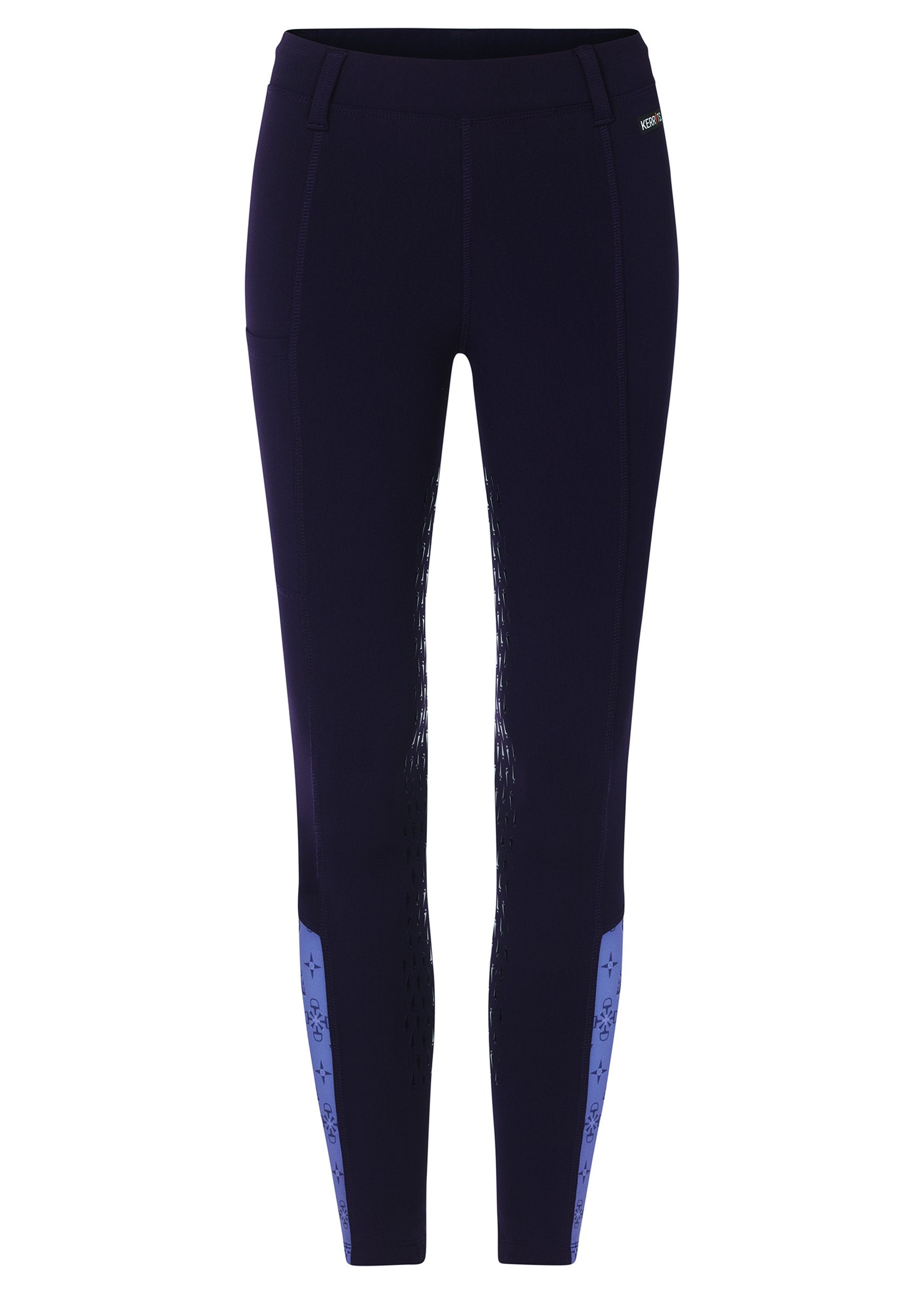Kerrits Kids' Thermo Tech Tight is a step up in warmth and grip. These comfy kids tights are ideal for colder seasons with a lightly brushed four-way stretch Thermo Tech™ that insulates, while supple Kerrit Sticks™ Silicone along the inner thigh and leg add grip. One side pocket holds treats for horse or rider. Two-inch elastic waistband with belt loops and the contrast at ankle adds a fun pop of color.