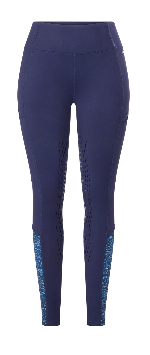 Modern, athletic detailing includes a wide comfort waistband and two pockets easily accessed in the saddle. Kerrit Sticks™ silicone grip runs along the inner leg and thigh.