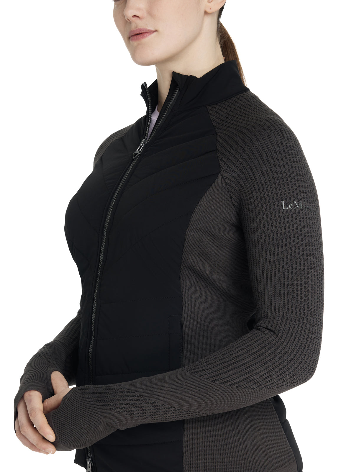 The LeMieux® Maddie Jacket is a lightweight classic hybrid jacket that will take you through the seasons. Form-fitting and flattering with warm padded sections and knitted patterned sleeves and sides. Two-way zip for easy access. Subtle LeMieux branding.