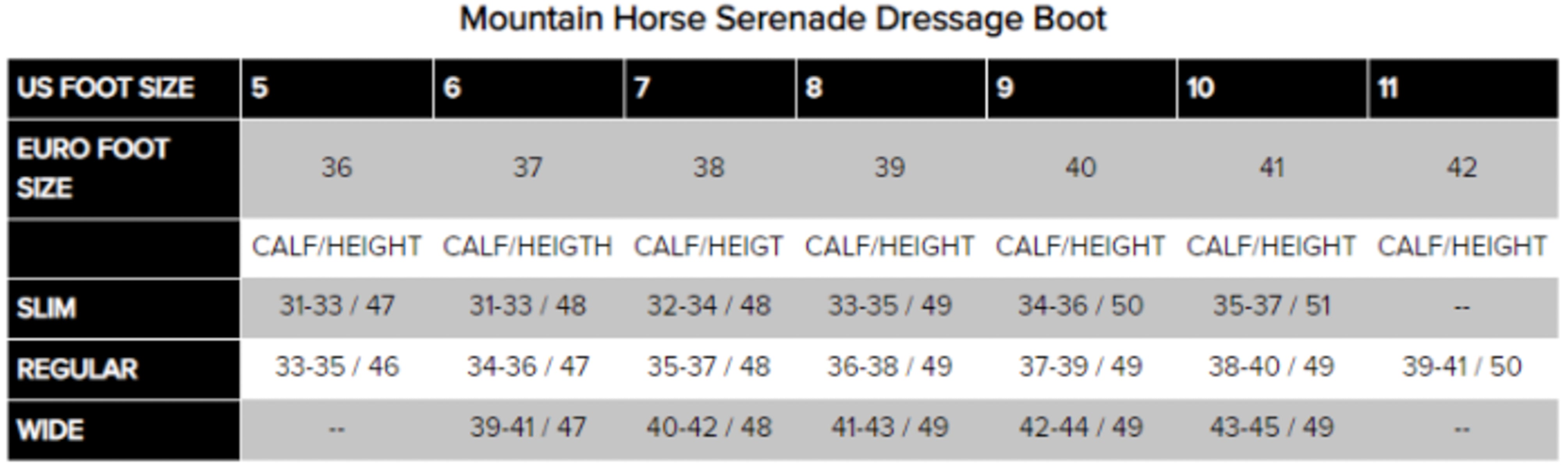 The Serenade Dressage Boot by Mountain Horse® offers style, comfort and durability for all levels up to Grand Prix. Made with the finest selected leather, this dressage boot combines elegance with a modern look using the finest quality materials and the highest standards of excellence and workmanship.