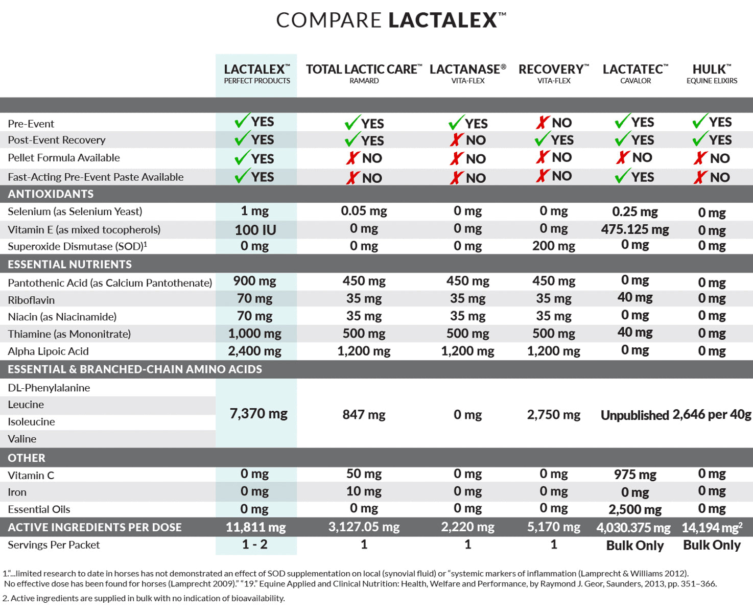 Lactalex™ Pre-Event Muscle Function & Recovery Paste (1-2 doses) supports optimal muscle function in hardworking horses. Lactalex helps your horse’s muscles work harder for longer and recover quickly. Made in the USA and formulated with the industry’s highest concentration of active ingredients, Lactalex was created for equine athletes that often battle exercise-induced muscle or back soreness.