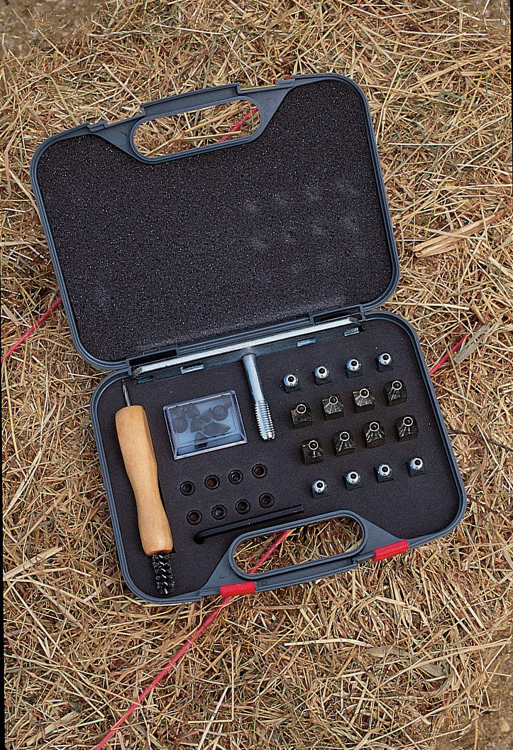 Packaged in a convenient storage box, the Roma® Stud Kit contains eight 1/2" grass studs, eight 1/4" road studs, eight set screws, ten rubber hold plugs, tee tap, stud hole cleaner and hexagon key. Everything you need to use horseshoe studs is organized in one convenient kit.