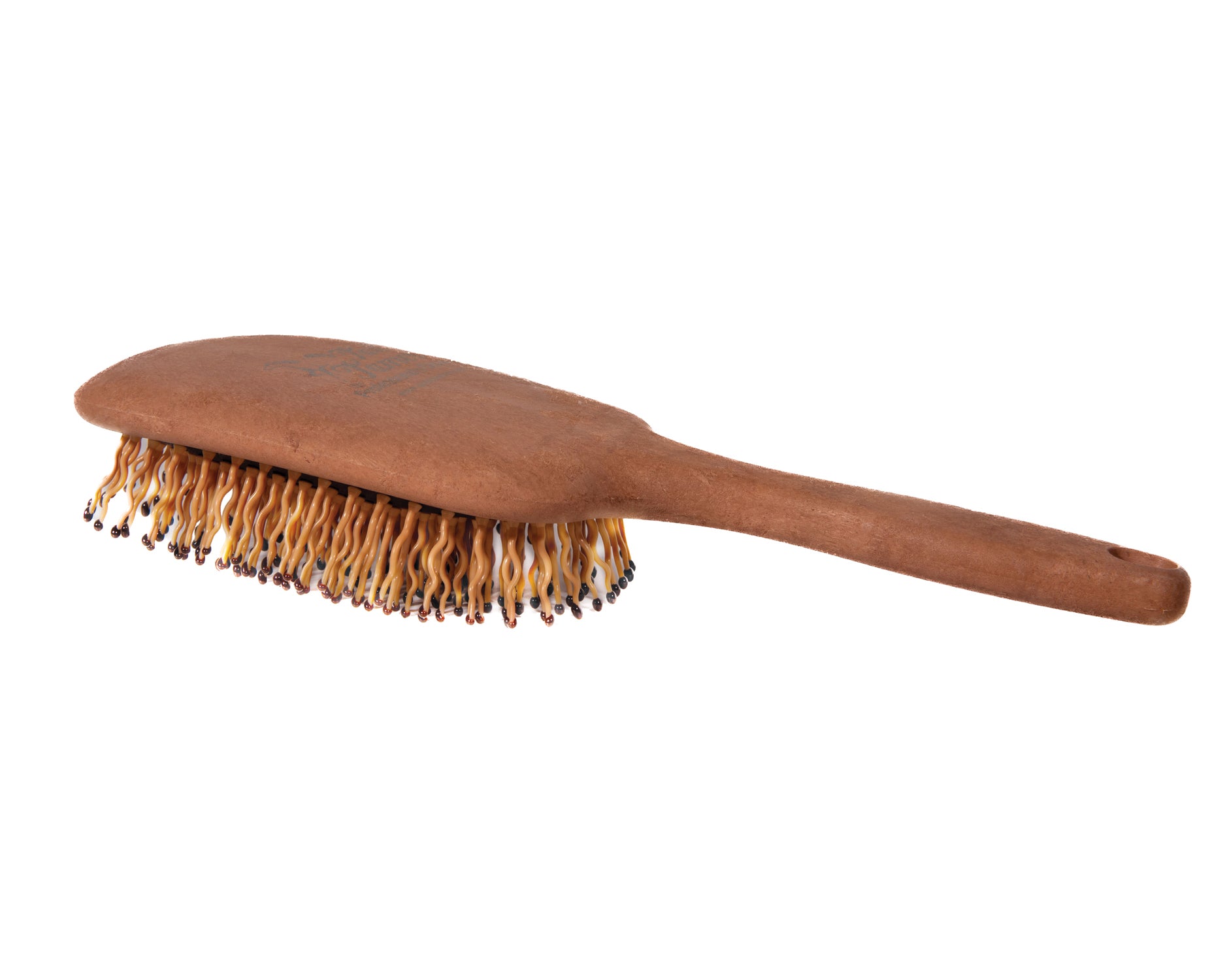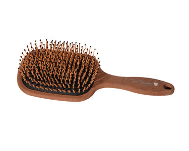 One of our most popular brush styles, the Tail Tamer Wood Paddle Brush, now has an eco friendly wooden paddle base and handle. Round balls on top of wavy bristles help detangle the mane or tail. The wooden handle makes this more durable than plastic brushes and the shape of the handle makes it comfortable to hold in use. Proof that you can have a hardworking brush without sacrificing style and flair!