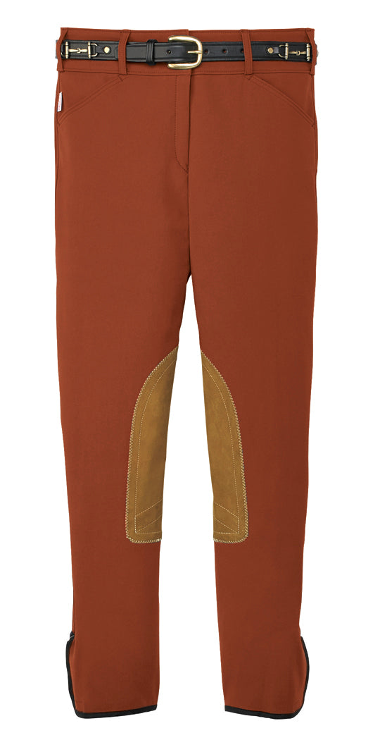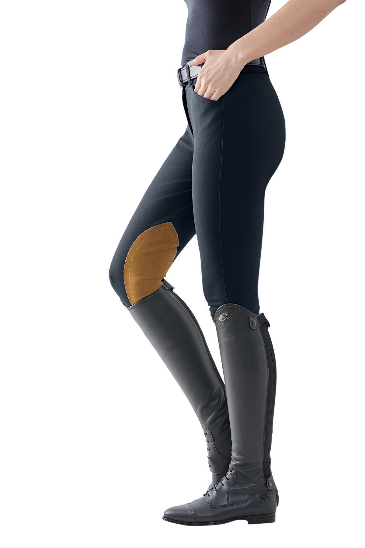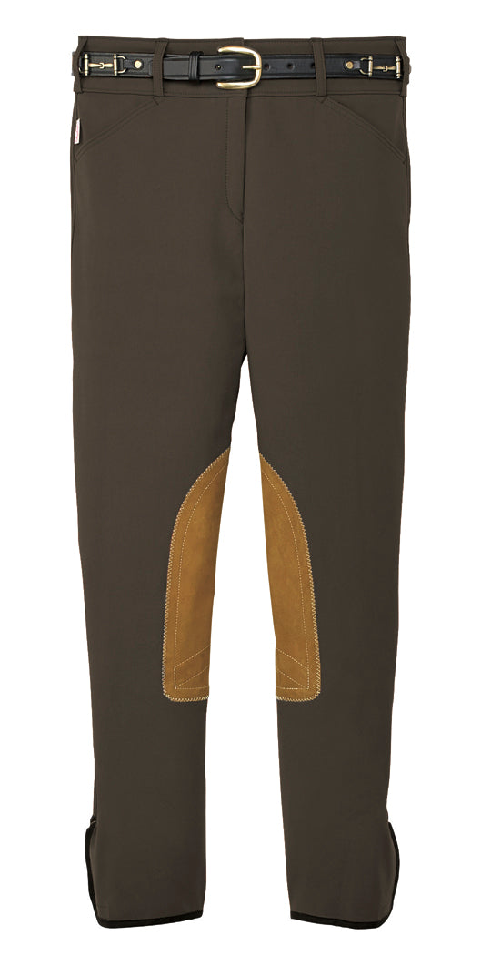 THE TAILORED SPORTSMAN™ Mid-Rise Vintage Patch Breech is a stylish update on the popular Trophy Hunter Low-Rise Breech design. Contrast Clarino™ knee patches are a fashionable touch to this comfortable front-zip breech. Lightweight woven TS fabric has four-way stretch for unrestricted movement. Velcro® ankle closures keep breech legs securely in place.