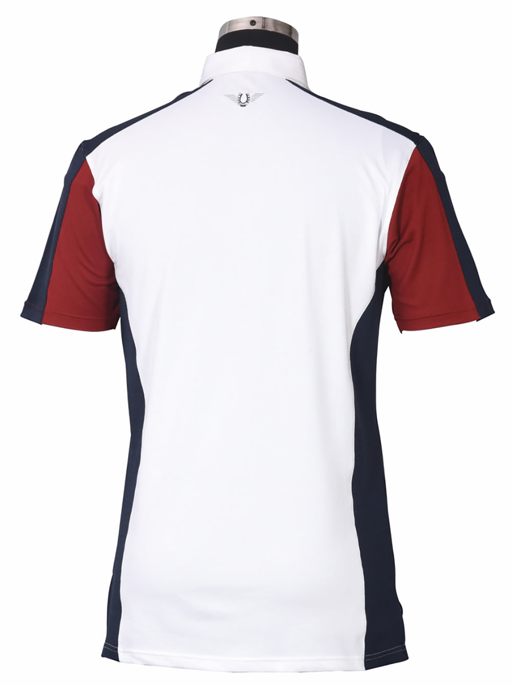The TuffRider® Men's Dennison Short Sleeve Show Shirt will give you a sophisticated presence while competing in the show ring. Designed with contrast colors on the side and sleeves, this shirt's style lends a trendy look to the classic shirt.