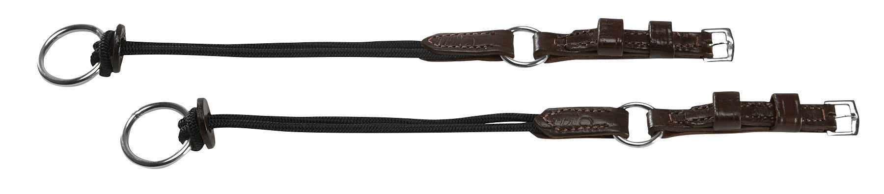 Developed in conjunction with top jumper riders, Walsh™ Gag Cheeks feature double nylon ropes, American leather ends and stoppers and stainless steel rings and hardware.  Easy to use, these gag cheeks have a second ring below the buckle to offer a bit more flexibility than traditional rope gag cheeks. Pair.
